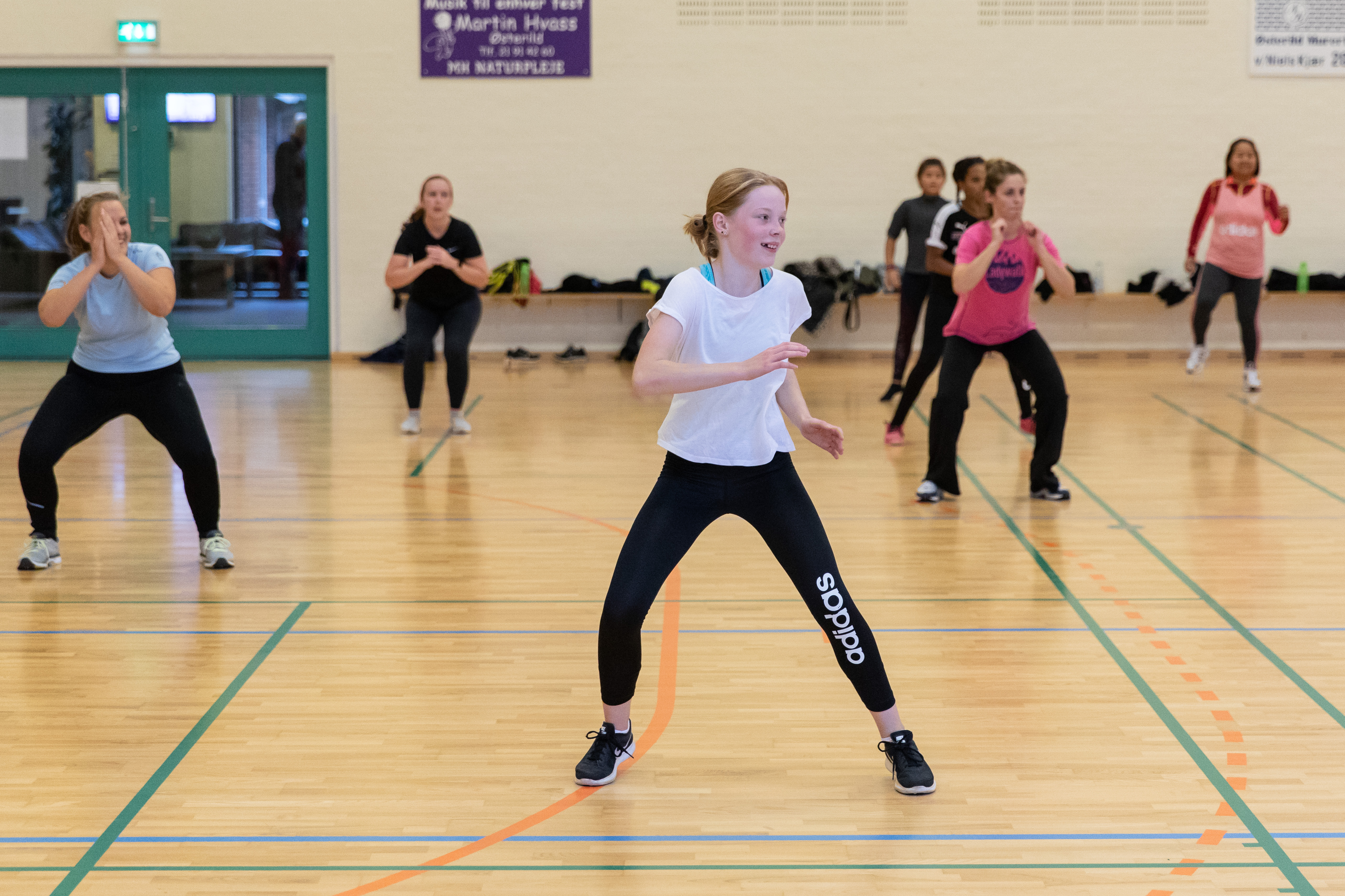 Lokalets gulv er opstreget med 3 badmintonbaner, lille bane til indendørs fodbold, volley, lille håndboldbane m.v. Gulvet har indbygget trampolin og springgrav.